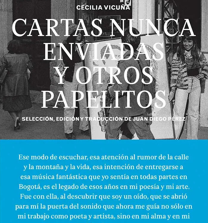 Cecilia Vicuña (1948) es una artista visual, poeta, cineasta y activista chilena. Ha publicado más de 30 libros de poesía y su obra plástica ha recibido múltiples reconocimientos, como el León de Oro de la Bienal de Venecia (2022) y el Premio Nacional de Arte de Chile (2023). Su influyente trabajo aborda temas como la destrucción ecológica, la memoria, la defensa de los derechos humanos y la denuncia de la homogeneización cultural. Antes de establecerse en Nueva York, en donde reside desde 1980, Vicuña vivió en el exilio por cinco años en Colombia después del golpe militar chileno de 1973.